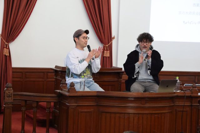 第1部では、Woodyコンテストの表彰式や府民会議のロゴマーク表彰式を執り行ったほか、講演会では新たな試みとして公開ラジオ形式により開催し、井上氏、山川氏のお二人の軽妙なトークで会場を盛り上げていただきました。